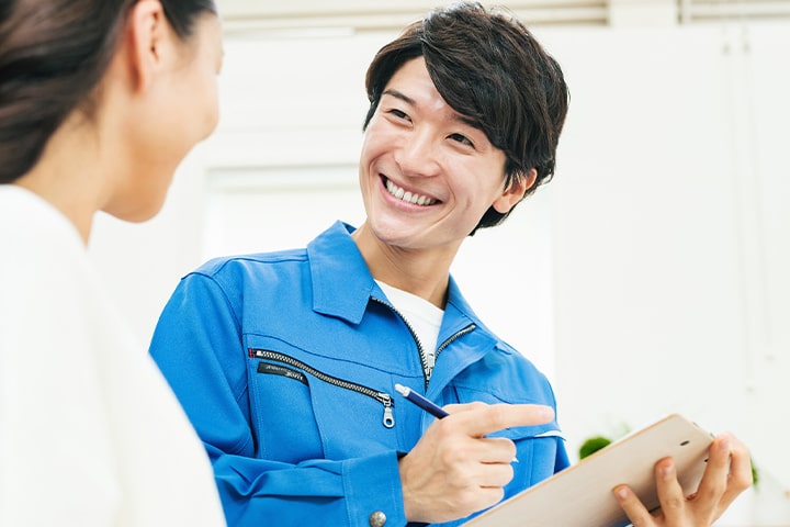 無料訪問・状況確認お問い合わせ後、ヒアリングさせていただき、お見積りのために訪問させていただきます。